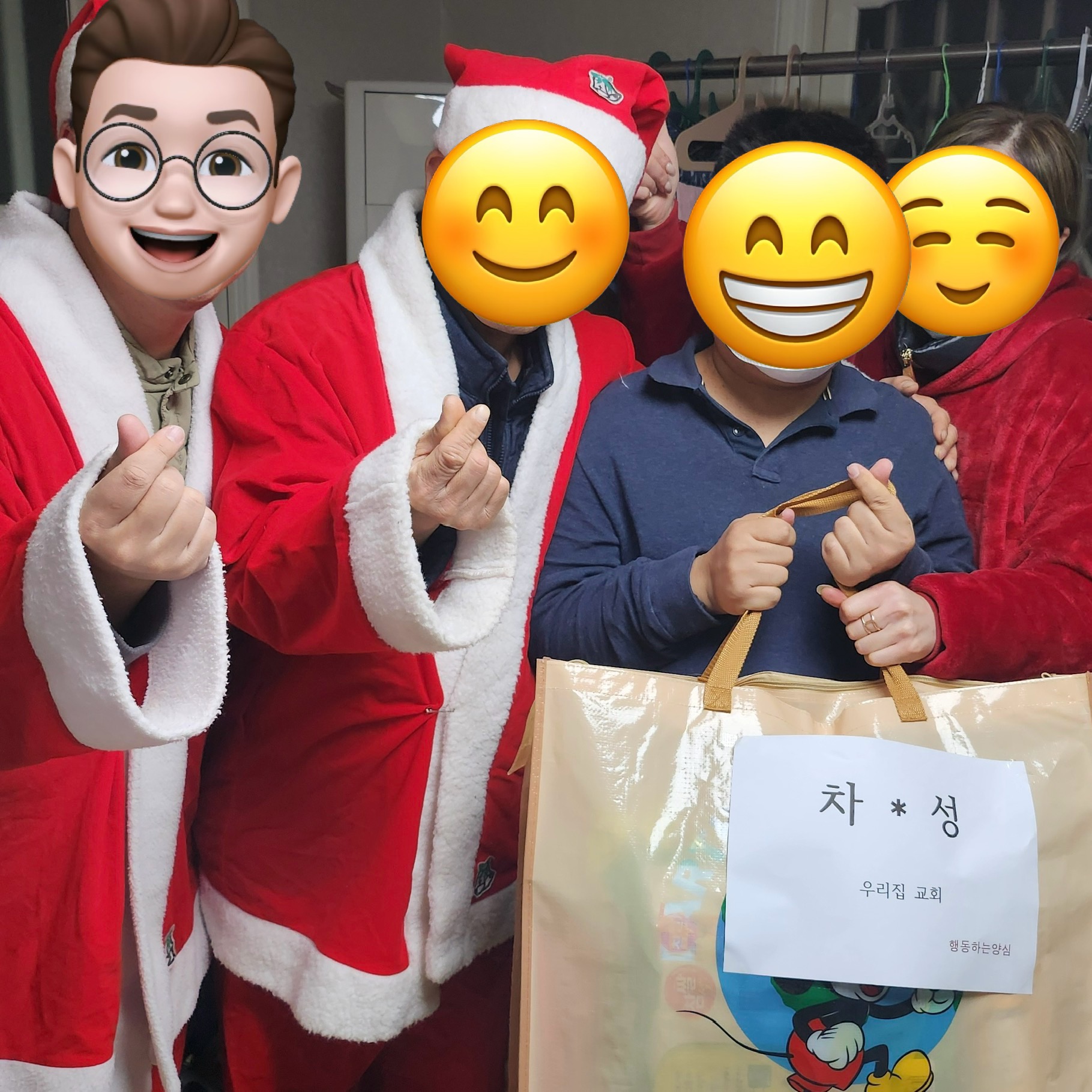 우리집교회에서는 총 10명의 이웃에게 선물을 전달하도록 지원을 했습니다. 그냥 돈만 보내는 것이 아니라 선물 전달하는 날 함께 참여해서 산타 할아버지(?) 흉내를 좀 냈습니다. 등촌동과 화곡동, 영등포에 위치한 그룹홈 네군데를 돌았습니다. 요즘은 이런 저런 이유로 새벽송을 안하지요. 아파트 같은 곳은 옆집에 피해가 되고 하니까 그러지 싶습니다. 어릴 때는 재밌었는데요. ㅎㅎㅎ 그런데 이번에는 문 앞에서 '고요한 밤 거룩한 밤'을 불렀습니다. 밖에서 캐럴을 불러본 게 얼마만인지 모르겠습니다.