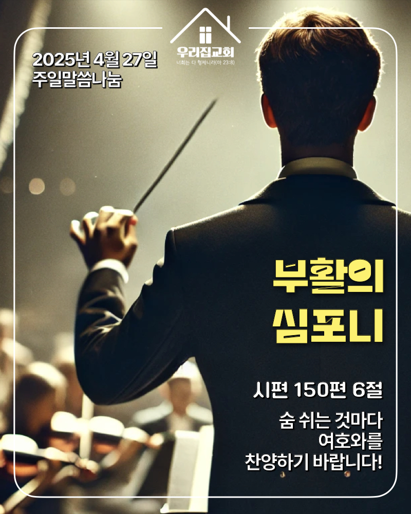 시편의 후반부는 할렐루야로 시작하는 찬양시들의 모음입니다. 특히나 시편 150편은 이런 찬양시의 대미를 장식하는 아름다운 시편입니다. 이 시편에서는 찬양해야 할 이유들을 일일이 나열하지 않습니다. 오히려 수많은 악기들이 등장하여 마치 거대한 오케스트라의 연주 같이 아름다운 심포니처럼 보입니다. 이윽고 그 악기들의 목록 맨 끝에 ‘숨쉬는 사람’이라는 가장 중요한 악기가 등장합니다.