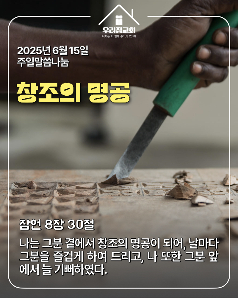 Q1. 하나님의 창조에 있어서 지혜는 어떤 역할을 감당하나요? ‘창조의 명공’이라는 표현을 묵상해봅시다.