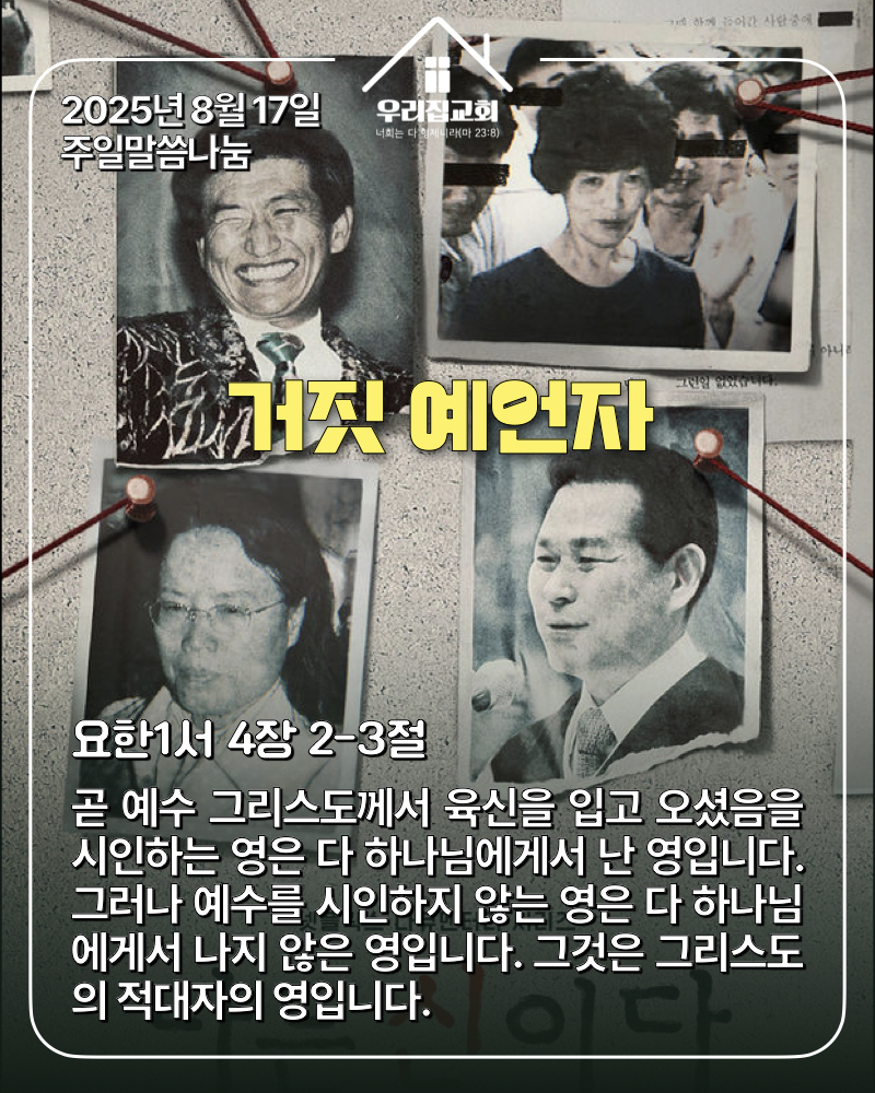 [나는 신이다]라는 다큐에는 JMS의 교주 정명석이 벌인 더러운 짓들이 적나라하게 담겨 있습니다. 종교를 도구삼아 성도들을 가스라이팅하고 그렇게 자신의 욕구를 채우려 했던 사이비교주의 모습을 보면서 많은 사람들이 충격을 받았습니다. 흔히 우리가 이단이라고 하는 이들은 너도 나도 그리스도와 하나님의 이름을 내세우면서 자신들이 옳다고 말합니다. 이단들 뿐일까요? 흔히 정치적인 성격을 드러내는 목회자들 역시 하나님의 이름으로 불법적인 일들을 하는 것을 어렵지 않게 볼 수 있습니다. 이 혼돈의 시대에 우리는 어떻게 거짓과 참을 구분할 수 있을까요?