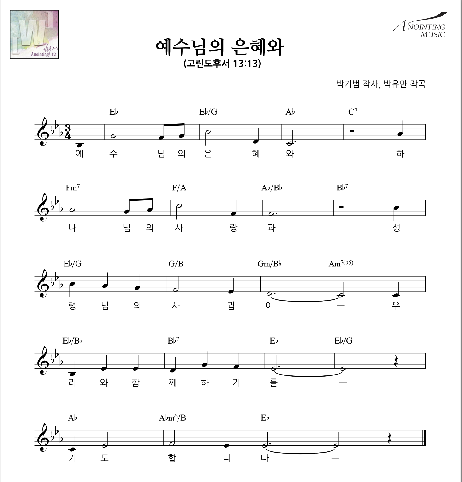 식후에 또한 그와 같이 잔을 가지시고 이르시되 이 잔은 내 피로 세운 새 언약이니 이것을 행하여 마실 때마다 나를 기념하라 (잔나눔)
