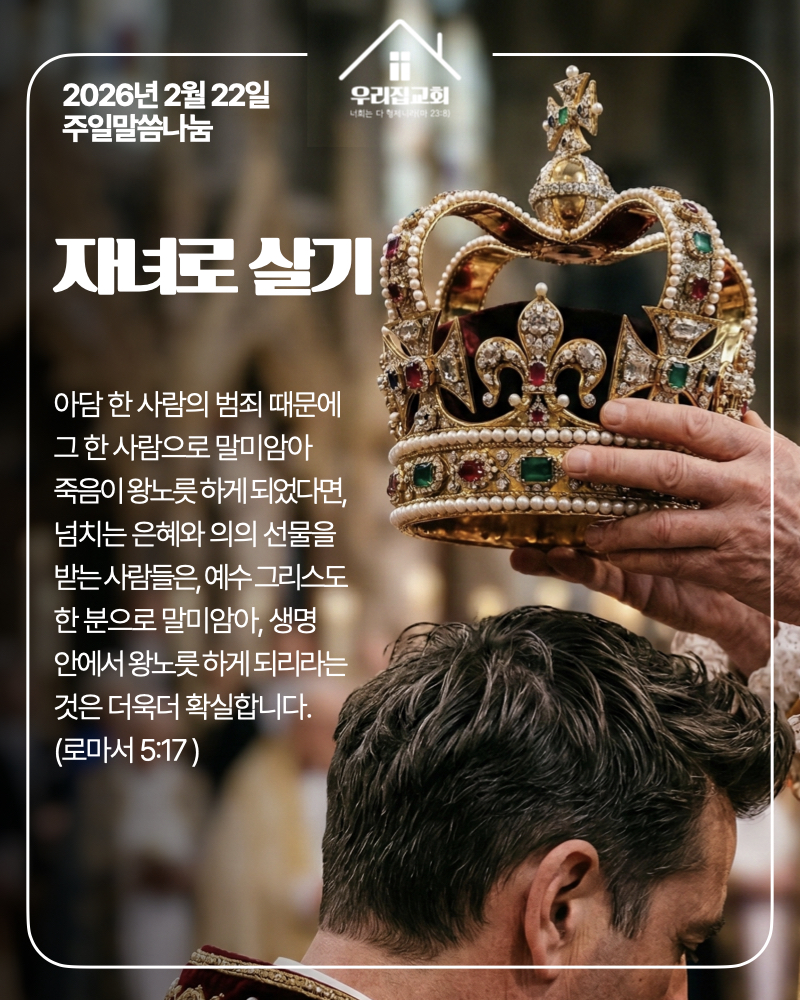 왕은 자신이 왕임을 증명하지 않습니다. 그저 왕으로서 살 뿐입니다. 그는 그렇게 지금 자신이 할 수 있는 일들을 하며 삽니다. 그리고 자신이 가진 것들을 누리며 삽니다. 우리는 하나님의 자녀임을 증명하기 위해 급급할 필요가 없습니다. 내게 부족한 것이 무엇인지를 고민하며 그 결핍을 채우려 다른 유혹에 눈 돌릴 이유가 전혀 없습니다. 그것은 애써 얻어야 할 것이 아닙니다. 그것은 원래 우리에게 있는 것이고 하나님으로부터 선물로 받은 것이기에 원래 하나님께 있던 것입니다. 선물을 받은 우리들은 그저 예수님이 그러셨듯 왕으로, 자녀로 살면 됩니다.(롬5:17) 내 삶에 최악의 날이 다가온다 해도 우리가 하나님의 자녀라는 사실은 변하지 않습니다. 그것은 우리의 결핍을 너머 풍성한 생명을 누리게 하는 은혜의 선물이기 때문입니다.